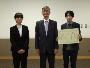 優秀賞の西条市自治政策研究所様への賞状授与